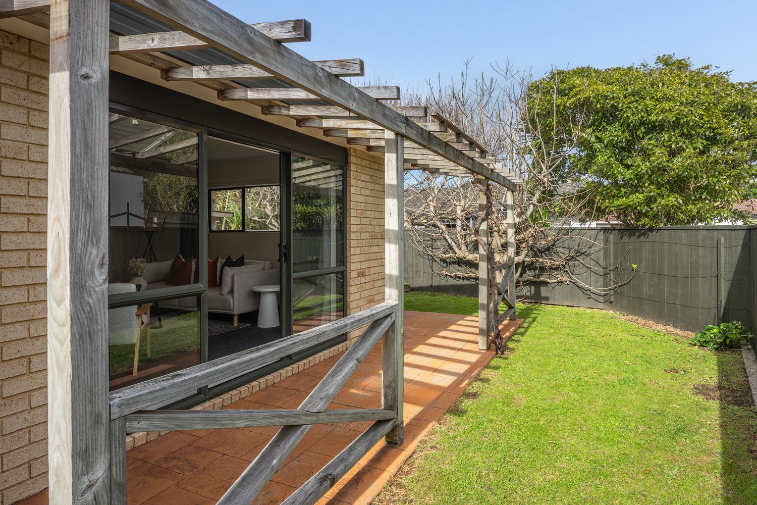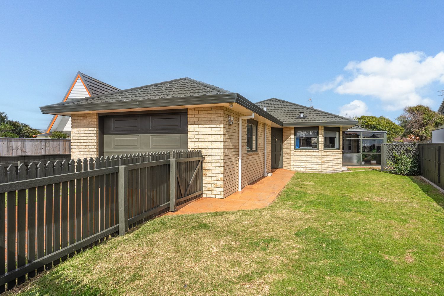 On its own title, on a flat, fully fenced section, the home features three bedrooms and two bathrooms, including an ensuite for the main bedroom.